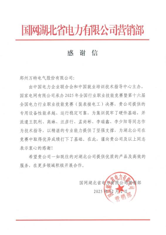 這一封感謝信,不僅代表了客戶(hù)對(duì)萬(wàn)特電氣的認(rèn)可,更是激勵(lì)我們不斷創(chuàng)新產(chǎn)品、提高服務(wù)意識(shí)的進(jìn)步源泉。