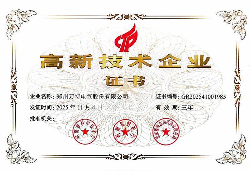 近日,萬特電氣傳來重磅喜訊!根據(jù)《關(guān)于組織開展2025年度高新技術(shù)企業(yè)申報工作的通知》(豫高企〔2025〕1 號)文件規(guī)定,河南省2025年第一批3160家擬認(rèn)定高新技術(shù)企業(yè)名單完成公示及核定,萬特電氣憑借出眾的科研創(chuàng)新能力、精細化的產(chǎn)品制造能力和穩(wěn)定的品質(zhì)把控能力,繼2022年再次通過 “高新技術(shù)企業(yè)” 這一重量級榮譽資質(zhì)認(rèn)證,相關(guān)認(rèn)定證書已正式下發(fā),有效期三年。