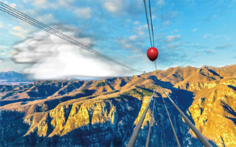 高空線路行走VR 實(shí)訓(xùn)系統(tǒng)是采用虛擬與現(xiàn)實(shí)結(jié)合的方式,在室內(nèi)架設(shè)一段模擬的500kV四分裂線路,借助VR 虛擬現(xiàn)實(shí)技術(shù),營造高山峽谷間分裂線路的虛擬場景,真實(shí)感受分裂導(dǎo)線行走過程及墜落風(fēng)險后果,訓(xùn)練作 業(yè)安全防護(hù)技能,鍛煉高空作業(yè)心理素質(zhì)。