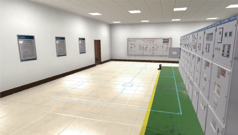 本項(xiàng)目在虛擬場(chǎng)景中搭建10kV典型配電室場(chǎng)景,系統(tǒng)采用10kV雙電源進(jìn)線方式,包括進(jìn)線柜、計(jì)量柜、PT 柜、出 線柜、聯(lián)絡(luò)柜、模擬屏等,模擬10kV開(kāi)關(guān)柜日常運(yùn)行方式,進(jìn)行開(kāi)關(guān)柜運(yùn)行轉(zhuǎn)檢修、檢修轉(zhuǎn)運(yùn)行作業(yè)過(guò)程中典型