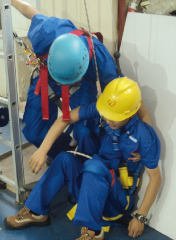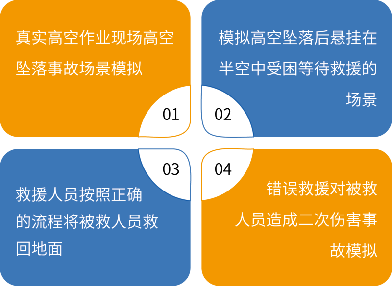 本項目在虛擬環(huán)境中模擬高空作業(yè)人員從高處墜落后發(fā)生安全帶吊掛事故,懸停在半空中等待救援的場景。施救 人員攜帶高空救援用品采用正確的施救方法將受困人員救回地面,訓(xùn)練學(xué)員高空救援的技能。